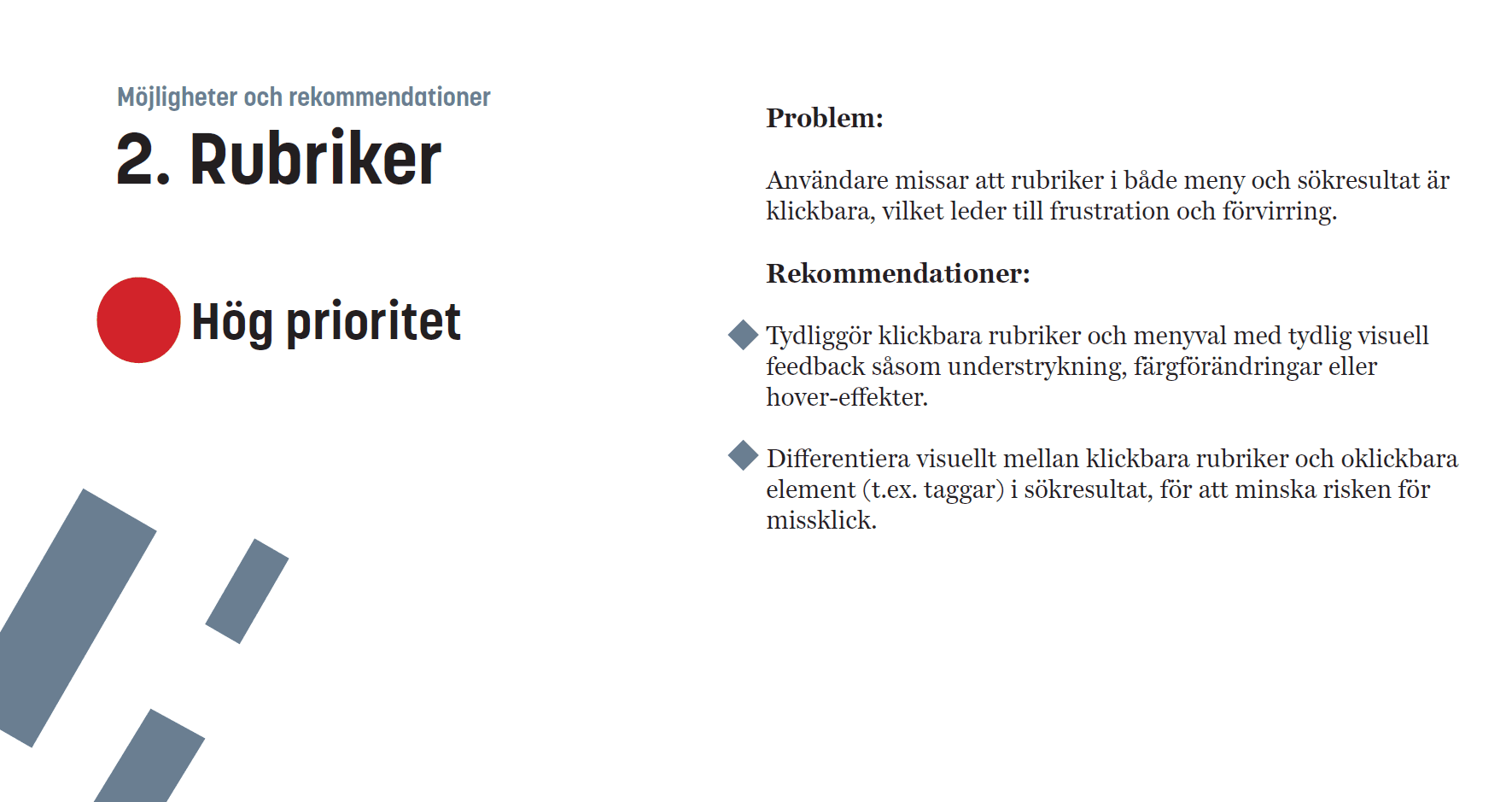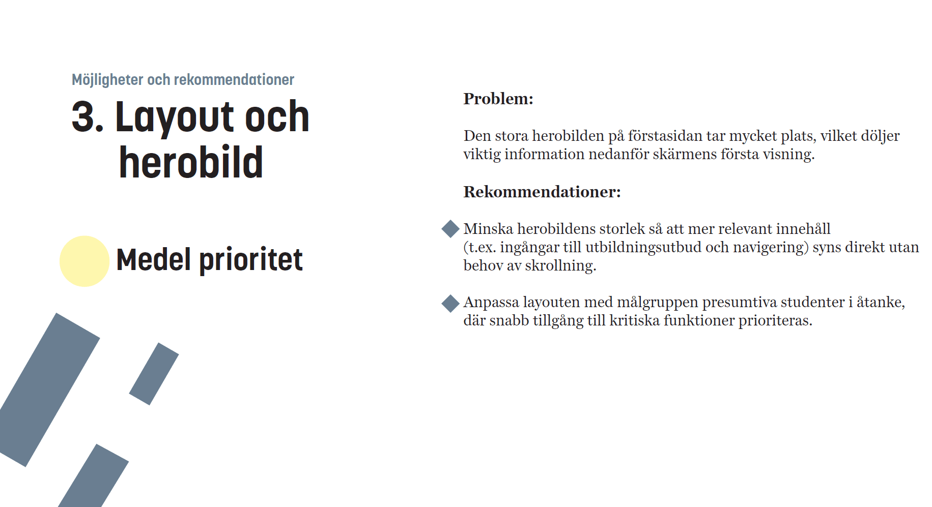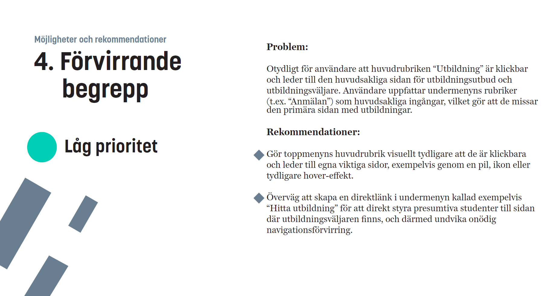 The research resulted in a prioritized list of usability issues and recommendations. These insights can support future improvements to navigation structure, labeling, and information clarity.